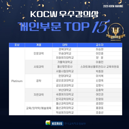 ■ [안내] 2025년 KOCW를 빛낸 올해의 콘텐츠 작성자 : 운영자 조회 : 468 등록일자 : 2025-12-01